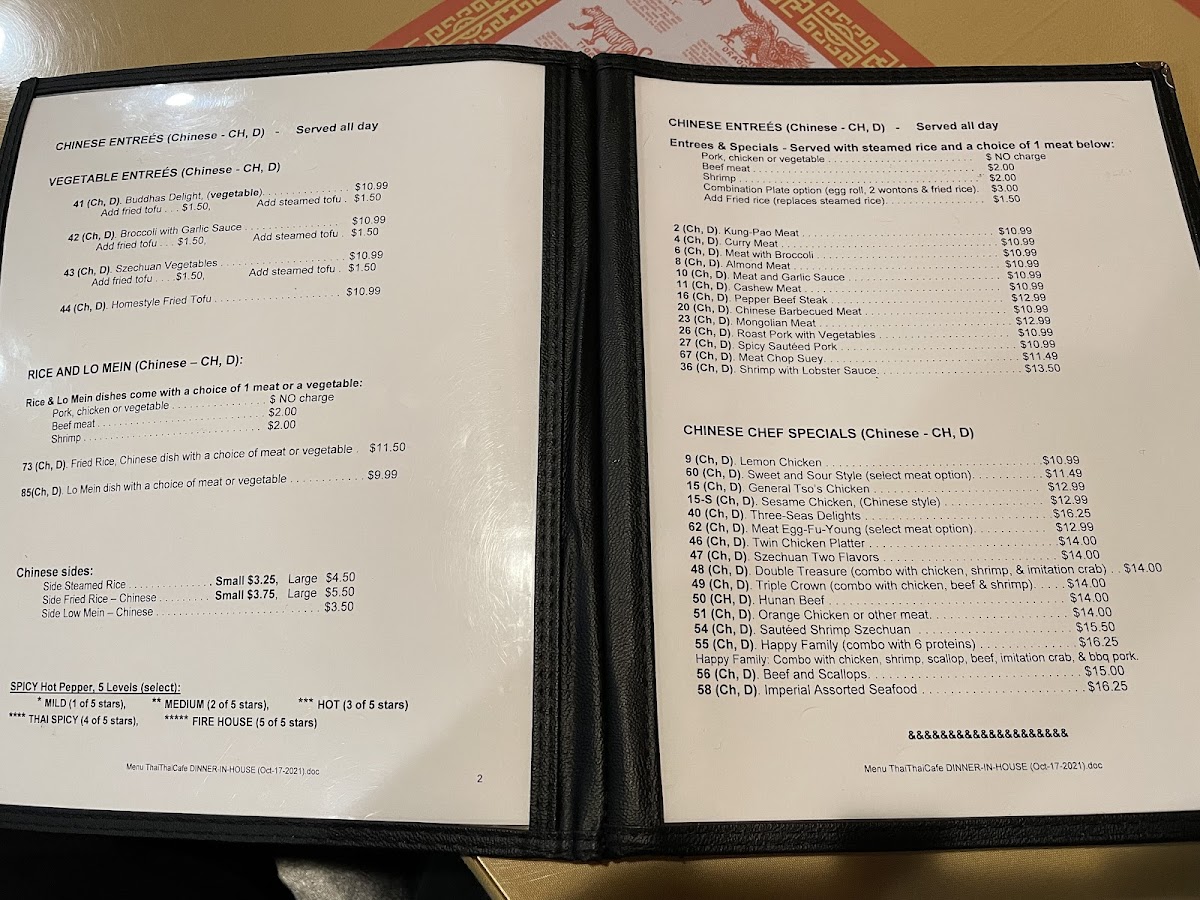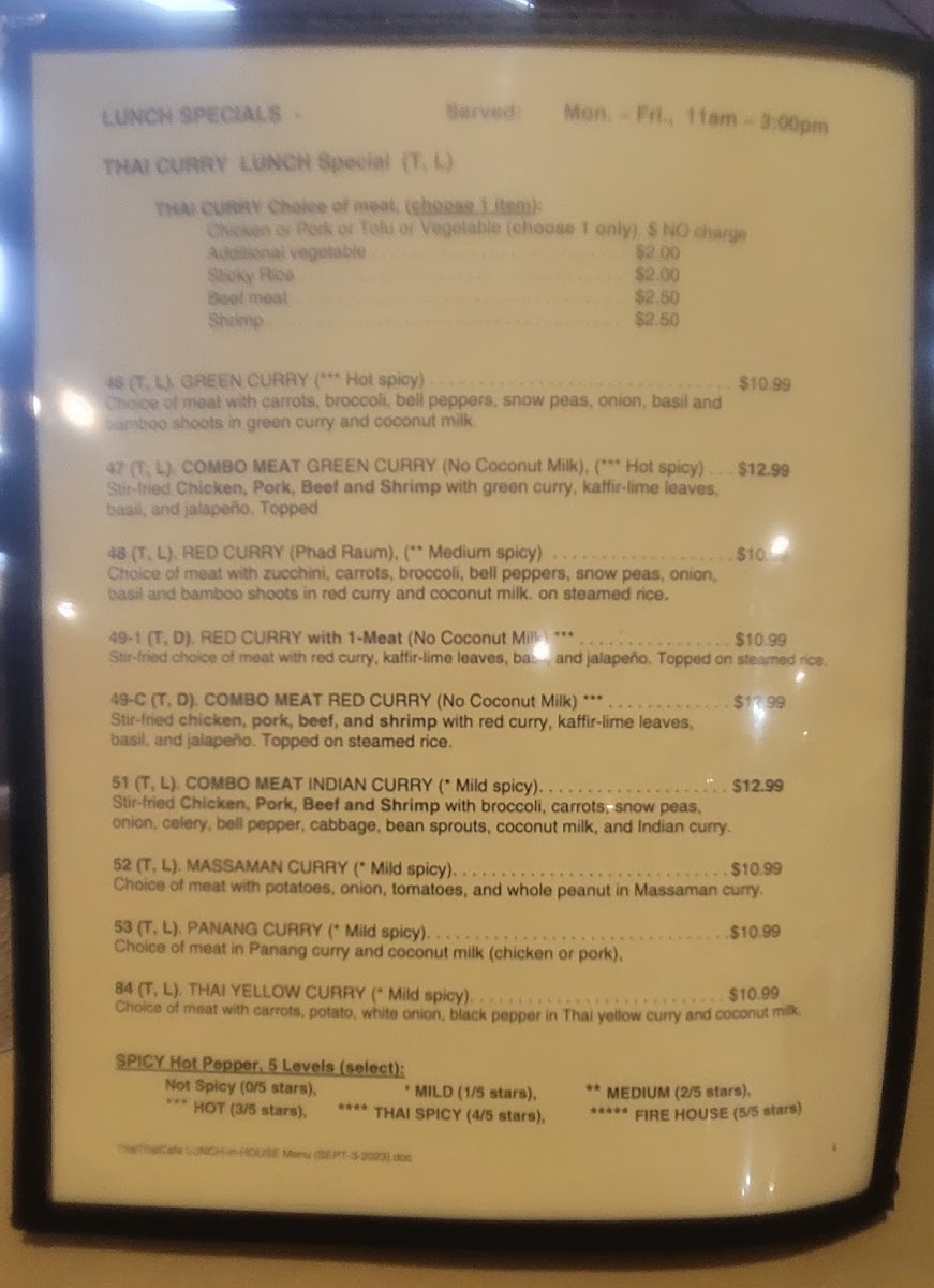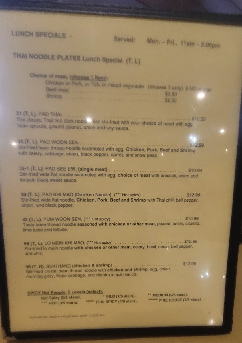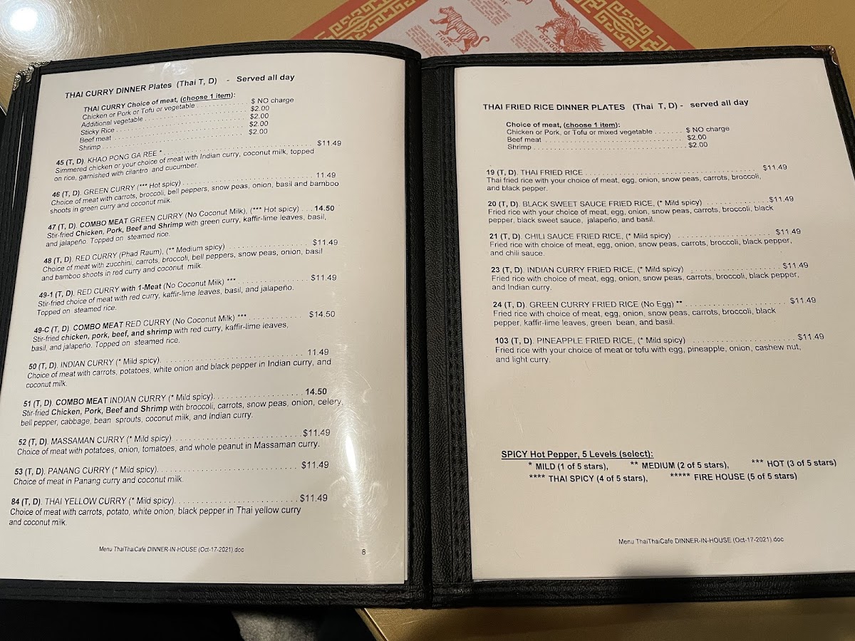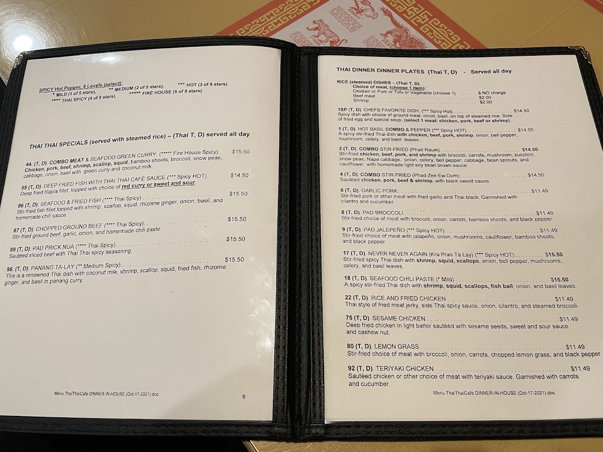Introducing the Menu at Thai Thai Cafe